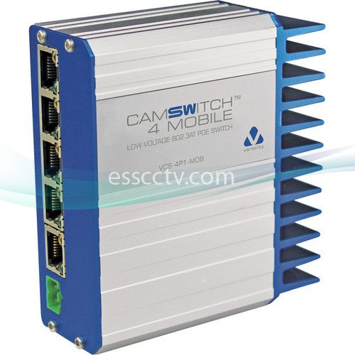 CAMSWITCH 4 Mobile features 4 802.3at POE ports, 1 non-POE port, and a versatile DC power input.