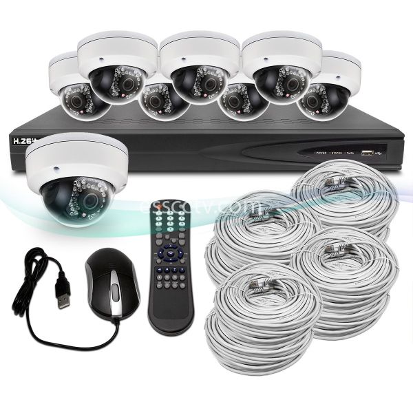 The 8 dome security cameras also included feature a 1/3" image sensor, 1.3MP of resolution, a 2.8mm fixed lens and an IR range of 98ft. The cameras also comes with weather resistant housing and it runs on Ethernet power.